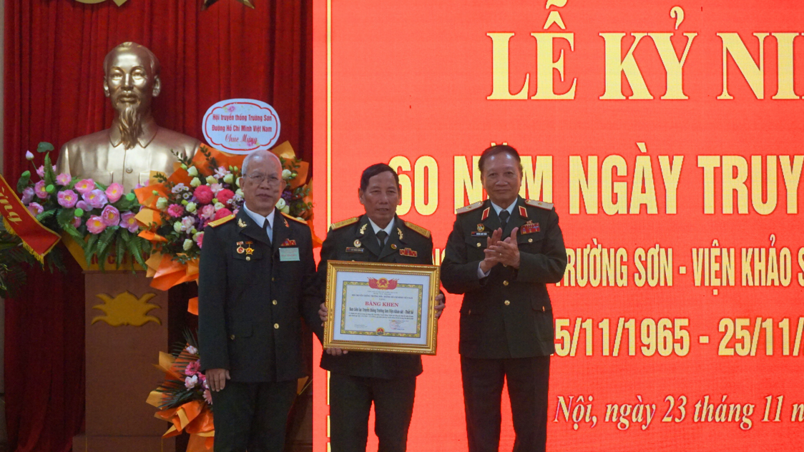 Cũng trong khuôn khổ buổi lễ, Thiếu tướng Hoàng Anh Tuấn – Phó Chủ tịch Thường trực Hội Trường Sơn Việt Nam đã trao Bằng khen của Ban Chấp hành Hội cho Ban Liên lạc Khảo sát Thiết kế 559 – Trường Sơn và gửi tặng hoa chúc mừng Ban Tổ chức. Thiếu tướng Hoàng Kiền cũng dành tặng hai cuốn sách mới xuất bản của mình cho lãnh đạo Công ty và đại diện Ban Liên lạc.